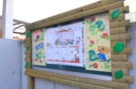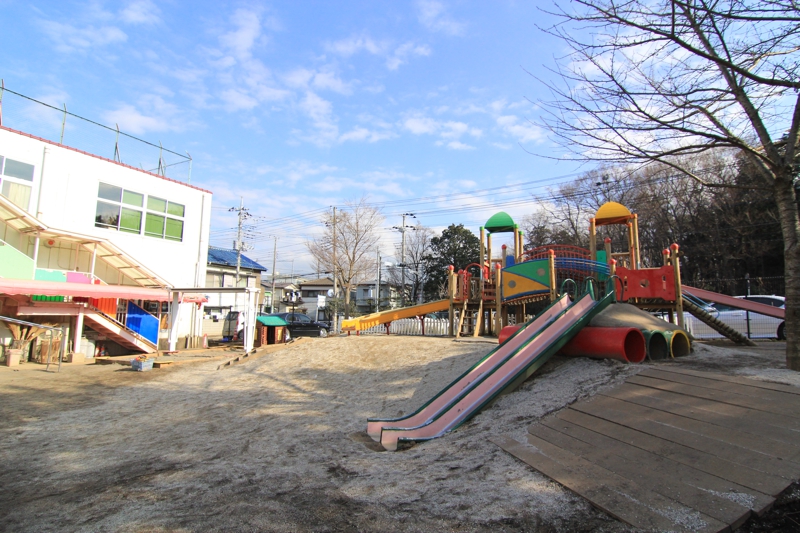 園庭では、子どもたちが元気に安全に走リ回れるように、設備の安全性を高め、室内では、自然素材の木を多く使い、子どもたちにやさしく・安心な幼稚園を心掛けています。