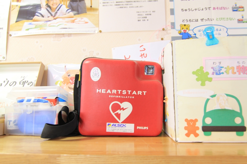 また、震災などの緊急時に対応する防災管理システムや、耐震性を高めた園舎、未来の子どもたちの為に、環境にやさしい太陽光を使った発電システムなどの設備に加え、緊急時のAED(自動体外式除細動器)や不審者などに対応した防犯カメラ・さすまたなどを備えております。